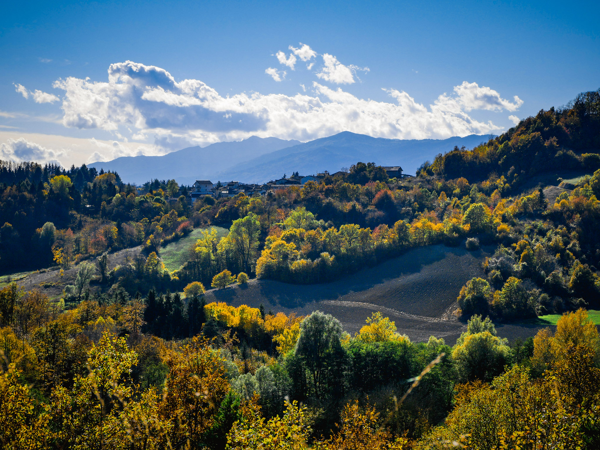 Durante l'autunno, le colline ondulate delle Langhe si trasformano in un dipinto vivente. I vigneti storici, che producono alcuni dei vini più pregiati al mondo, assumono sfumature che vanno dal giallo oro al rosso intenso, creando un mosaico di colori che si estende a perdita d'occhio. I boschi incantati di faggi, castagni e querce completano questo quadro mozzafiato, offrendo panorami esclusivi con viste a 360° sui colori autunnali più spettacolari d'Italia.